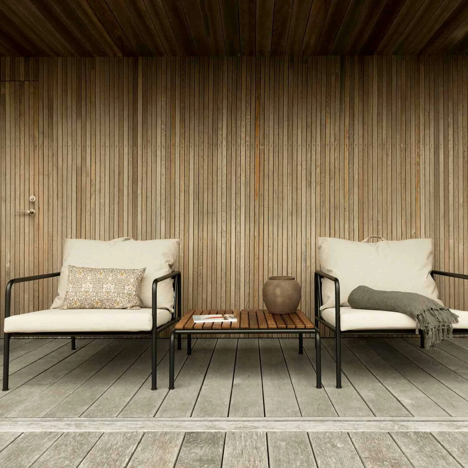 Kombiniere den Sessel mit einem AVON Fußhocker von Houe.