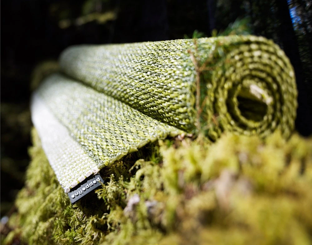 PVC-Kunststoff und Polyesterschnüre. Waschmaschinen geeignet bis zu 30 Grad. NICHT geeignet für den Trockner. Die Matte sollte sehr stark gezogen werden, solange diese noch nass ist und zum trocknen auf der Wäscheleine hängt.