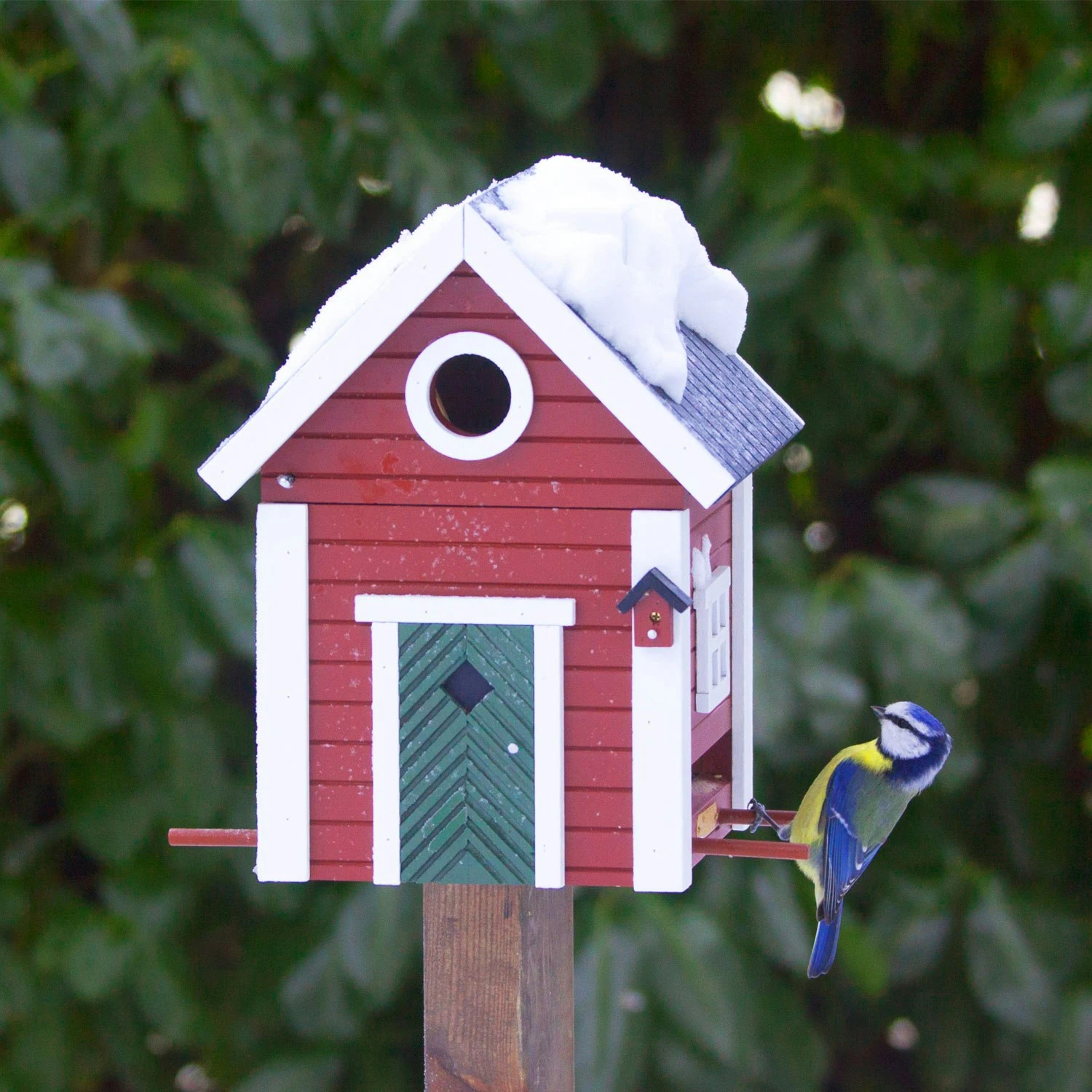 Holen Sie sich eine kombinierte Voliere und Vogelhäuschen mit Multiholk von Wildlife Garden, eine dekorative Gestaltung in Zusammenarbeit mit Expertenrat entwickelt von Ornithologen. Innerhalb der Voliere gibt es Aussparungen für die kleinen Küken zu helfen klettern durch das Austrittsloch zu erhalten, wenn es Zeit ist, die Flügel für einen ersten Flug zu versuchen. Jede Multiholk hat eine kleine Voliere auf der Außenseite der Fassade, ein netten Teils des detaillierten Designs. Ein Fütterungsfenster wird in einer der Außenwand, einem sogenannten geschlossenen Feeder, mit praktischen Sticks vor dem integriert die Vögel sitzen auf können, so dass sie ohne sitzen in der Nahrung zu sich nehmen können. Diese Konstruktion hält den Einzug sauber und hält Infektionen und Kot aus der Nahrung entfernt. Wählen Sie zwischen einer eigentümlichen Voliere in funktionalistischen Stil oder eine in der Form eines traditionellen schwedischen Häuschen, ob Ihr Haus und Garten in der Stadt oder auf dem Land befindet. Merkmale Zu und Voliere Detail Design kombiniert, dekorative und zugleich entwickelt, um funktionale für die Vögel Avaliable in verschiedenen Design, von Miniaturen eines funktionalistischen Hauses Ferienhaus oder Villa Notches für Innere der Voliere Klettern macht es einfacher für die Küken Fenster (geschlossene Zuführung), um aus Feeding – ein hygienisches Design, dass auch das Essen von Wind und regen Schrauben und Halterung für die Montage enthalten, pole nicht enthalten schützt!