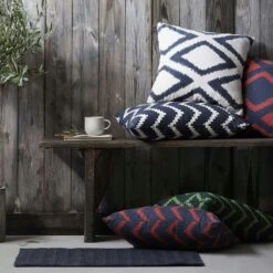 Ikat Sema Kissen 40×60 Cm Im Freien Nutzbar, Blau / Off-white